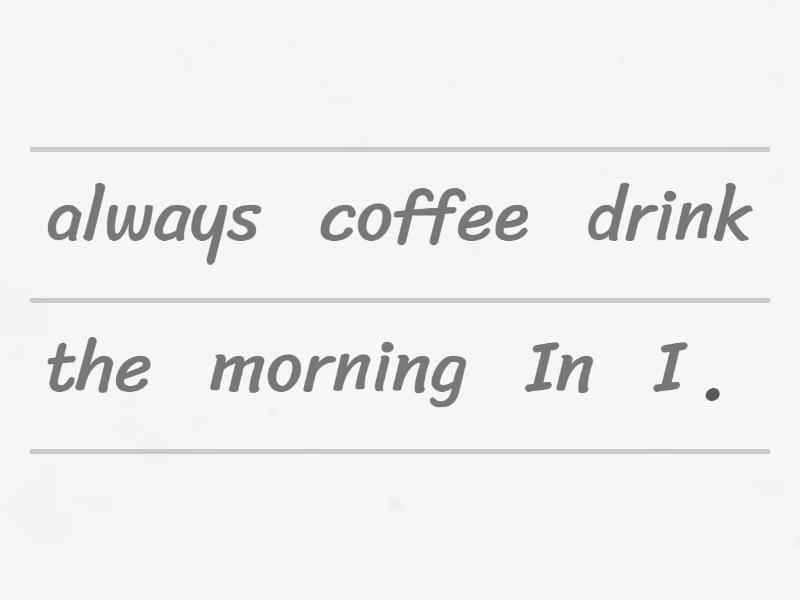 In the morning I always drink coffee., In the afternoon I go shopping., Before bed I usually read a book., After class I walk home., At lunchtime I eat a sandwich., I take my children to school in the morning., I brush my teeth before bed., I cook dinner in the evening., I never drink coffee in the afternoon., I start class at half past nine in the morning.,
