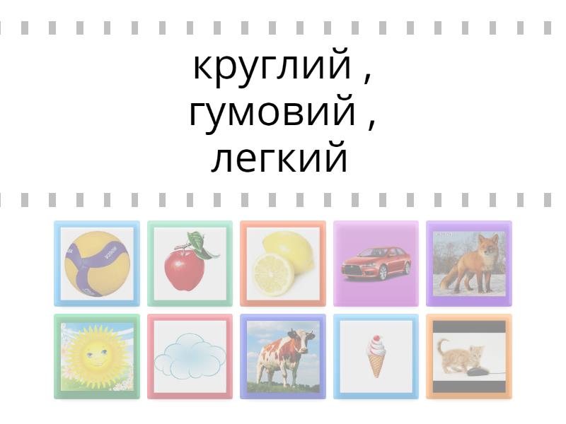 круглий, гумовий, легкий, темна, дощова, велика, пухнастий, вусатий, лагідний, сходить, світить, гріє, шумить, сигналить, мчиться, мукає, жує, пасеться, солодке, соковите, червоне, кислий, жовтий, ароматний, руда, хитра, хвостата, смачне, холодне, солодке,