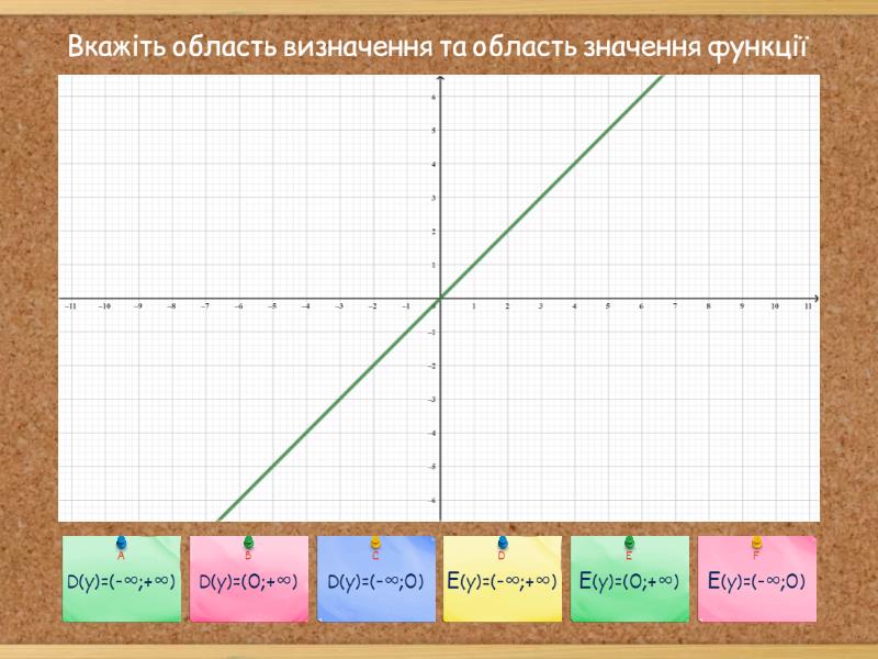 1) Вкажіть область визначення та область значення функції a) D(y)=(-∞;+∞) b) D(y)=(0;+∞) c) D(y)=(-∞;0) d) Е(y)=(-∞;+∞) e) Е(y)=(0;+∞) f) Е(y)=(-∞;0) 2) Вкажіть область визначення та область значення функції a) D(y)=(-∞;+∞) b) D(y)=[0;+∞) c) D(y)=(-∞;0] d) Е(y)=(-∞;+∞) e) Е(y)=[0;+∞) f) Е(y)=(-∞;0] 3) Вкажіть область визначення та область значення функції a) D(y)=(-∞;+∞) b) D(y)=(-∞;0) c) D(y)=(-∞;0)⋃(0;+∞) d) Е(y)=(-∞;+∞) e) Е(y)=(-∞;0) f) Е(y)=(-∞;0)⋃(0;+∞) 4) Вкажіть область визначення та область значення функції a) D(y)=(-∞;+∞) b) D(y)=[0;+∞) c) D(y)=(-∞;0] d) Е(y)=(-∞;+∞) e) Е(y)=[0;+∞) f) Е(y)=(-∞;0] 5) Вкажіть область визначення та область значення функції a) D(y)=(-∞;+∞) b) D(y)=[0;+∞) c) D(y)=(-∞;0] d) Е(y)=(-∞;+∞) e) Е(y)=[0;+∞) f) Е(y)=(-∞;0] 6) Вкажіть область визначення та область значення функції a) D(y)=(-∞;+∞) b) D(y)=(-∞;0) c) D(y)=(-∞;0)⋃(0;+∞) d) Е(y)=(-∞;+∞) e) Е(y)=(-∞;0) f) Е(y)=(-∞;0)⋃(0;+∞) 7) Вкажіть область визначення та область значення функції a) D(y)=(-∞;+∞) b) D(y)=(0;+∞) c) D(y)=(-∞;0) d) Е(y)=(-∞;+∞) e) Е(y)=(0;+∞) f) Е(y)=(-∞;0) 8) Вкажіть область визначення та область значення функції a) D(y)=(-∞;+∞) b) D(y)=(0;+∞) c) D(y)=(-∞;0) d) Е(y)=(-∞;+∞) e) Е(y)=(0;+∞) f) Е(y)=(-∞;0)