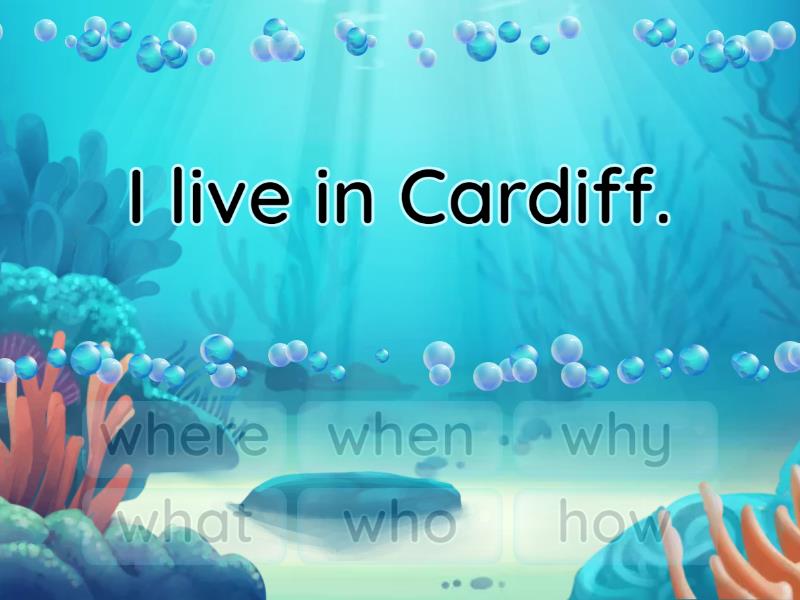 where - I live in Cardiff., when - April last year., what - Is your favourite food, who - The man took it., why - Because it is beautiful., how - You mix the juice with soda and ice.,