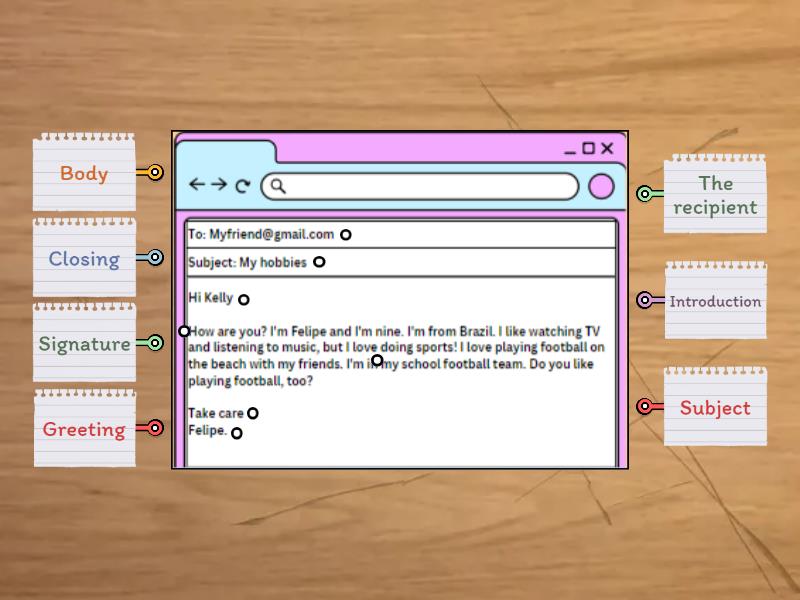 Signature, Greeting, Body, Closing, Introduction, The recipient, Subject.