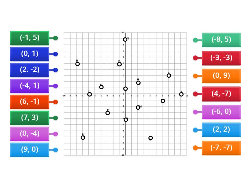 (2, 2), (4, -7), (-7. -7), (-1, 5), (0, -4), (2. -2), (-8, 5), (6, -1), (-4, 1), (9, 0), (-3, -3), (0, 9), (7, 3), (-6, 0), (0, 1).