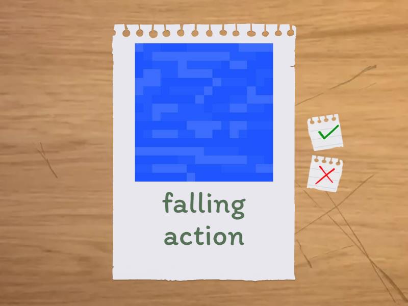 exposition - The very beginning. We learn about characters, setting, and the conflict., rising action - The events that explain the main problem in the story., climax - The main problem in the story reaches its peak., falling action - The events after the climax., resolution - The conflict ends; problems are solved.,