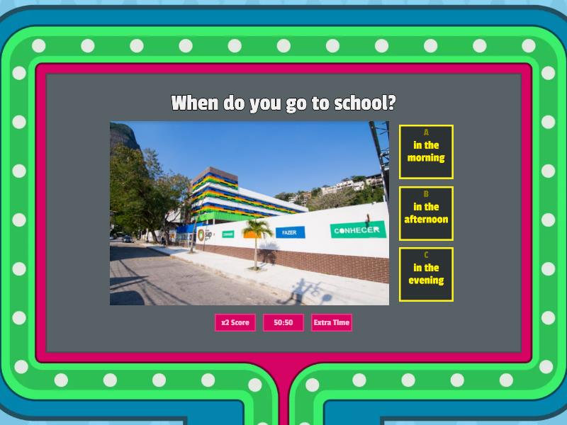 1) When do you go to school? a) in the morning b) in the afternoon c) in the evening 2) When do you have physical education classes? a) in the morning b) in the afternoon c) in the evening 3) When do you have lunch? a) in the morning b) in the afternoon c) in the evening 4) When do you leave school? a) in the morning b) in the afternoon c) in the evening 5) When do you have dinner? a) in the afternoon b) in the evening c) at night 6) When do you go to bed? a) in the afternoon b) in the evening c) at night