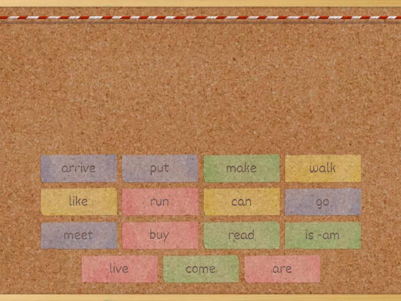 come - came, buy - bought, go - went, like - liked, make - made, live - lived, put - put, can - could, is -am - was, are - were, arrive - arrived, walk - walked, read - read, run - ran, meet - met,