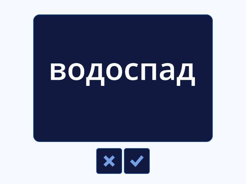 океан - ocean, гора - mountain, тропічний ліс - rainforest, озеро - lake, пустеля - desert, річка - river, долина - valley, пляж - beach, острів - island, водоспад - waterfall , льодовик - glacier, море - sea,