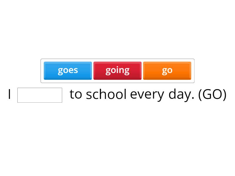 I ____ to school every day. (GO) I ____ to the park now. (GO) My sister ____ outside right now. (PLAY) My sister ____ videogames every saturday. (PLAY) We ____ our favourite cartoon at the moment. (WATCH) We ____ TV on Sundays. (NOT WATCH)