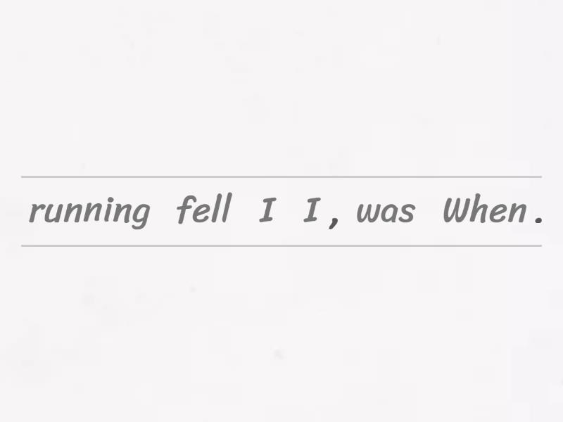 When I was running, I fell., When she was reading the book, she laughed. , When they were dancing, I took a photo. , When we were listening to the teacher, a student shouted. , When I was sitting on the bus, I chatted with my friend. , I saw a bird when I was walking home. , I ate snacks when I was watching the movie. , The teacher saw me when I was playing games. , We didn't talk when Mr Huckle was teaching. , They didn't look when they were crossing the road. ,