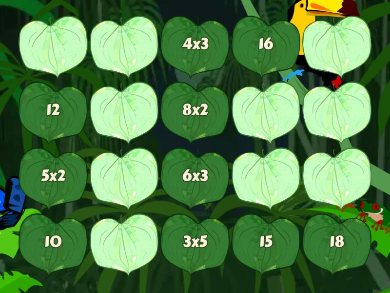 5x2 - 10, 4x3 - 12, 8x2 - 16, 3x5 - 15, 6x3 - 18, 4x6 - 24, 5x4 - 20, 7x3 - 21, 3x3 - 9, 6x5 - 30,
