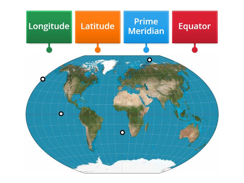 Prime Meridian, Equator, Latitude, Longitude.