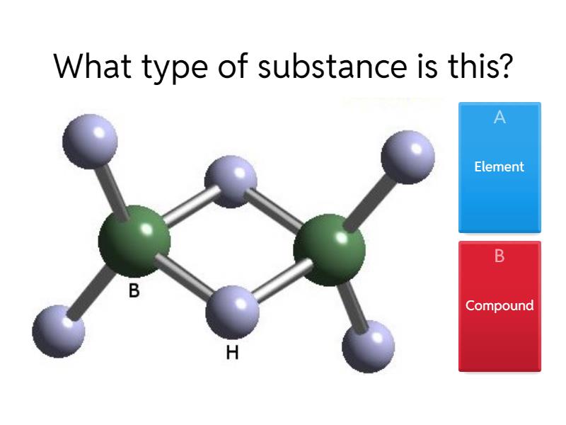 1) What type of substance is this? a) Element b) Compound 2) What type of substance is this? a) Element b) Compound 3) What 2 words could describe this substance? a) Molecule b) Compound c) Mixture 4) What 2 words could describe this substance? a) Atoms b) Molecule c) Element d) Mixture 5) What word best describes this collection of atoms? a) Element b) Compound c) Mixture 6) What 2 of the facts are true? a) Elements only have one type of atom, compounds have more than one b) Elements are never molecules c) Only elements are found in the periodic table 7) Which 3 of these are elements? a) Oxygen b) lithium hydroxide c) Carbon dioxide d) Nitrogen e) Carbon 8) Which 3 of these are compounds? a) oxygen b) Sulphur dioxide c) lithium hydroxide d) Lithium e) Neon f) Copper sulphate 9) Which 3 of these are mixtures? a) Water b) Sugar c) Salty water d) Air e) Blood
