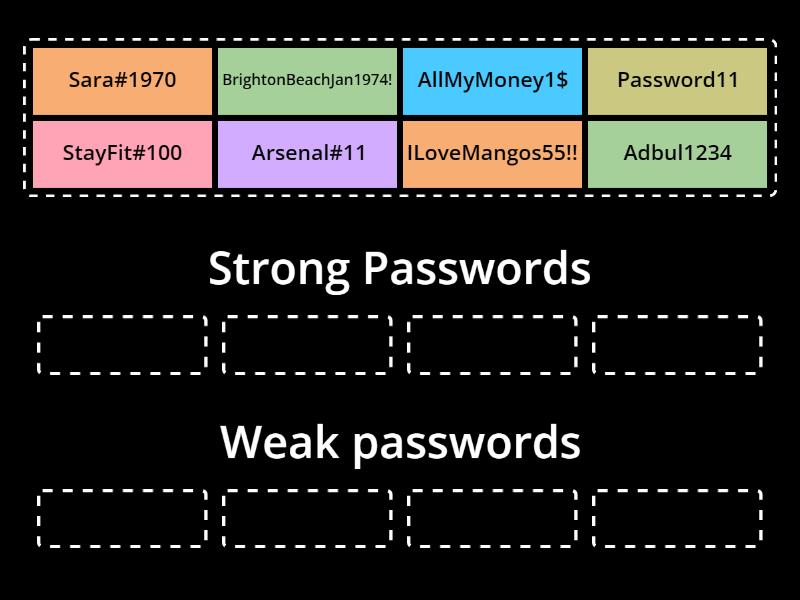 Sort the passwords: there are 4 Strong and 4 Weak passwords
