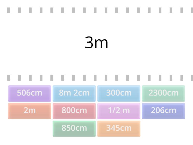 300cm - 3m, 800cm - 8m, 345cm - 3m 45 cm, 850cm - 8m 50 cm, 1/2 m - 50cm, 206cm - 2m 6cm, 2300cm - 23m, 2m - 200cm, 506cm - 5m 6 cm, 8m 2cm - 802cm,