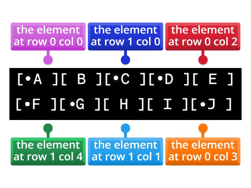 the element at row 1 col 1, the element at row 0 col 2, the element at row 0 col 3, the element at row 1 col 4, the element at row 0 col 0, the element at row 1 col 0.