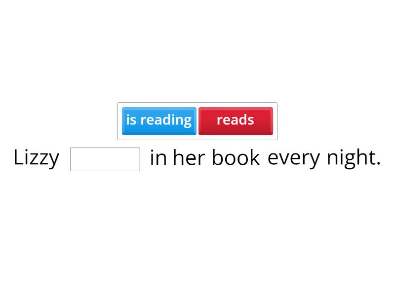 Lizzy ____ in her book every night. Lola ____ to work by car. Ben ____ in a hotel this summer. I ____ the newspaper at the moment. We ____ in Florida. This week we ____ them how to drive. My mom ____ on saturdays. We ____ a movie this evening.