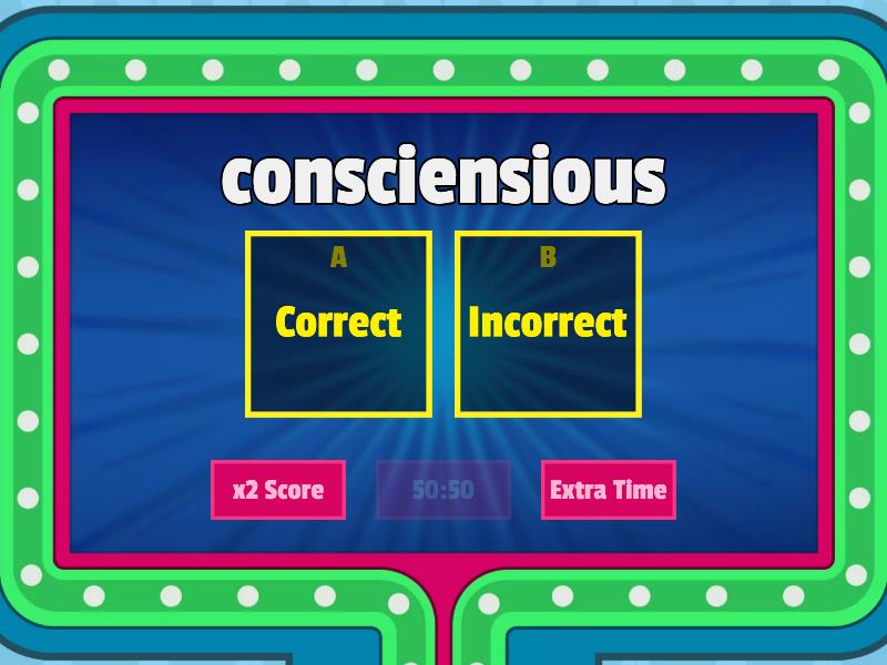 1) consciensious a) Correct b) Incorrect 2) unsecurity a) Correct b) Incorrect 3) knowledgeable a) Correct b) Incorrect 4) fashionible a) Correct b) Incorrect 5) humility a) Correct b) Incorrect 6) strenght a) Correct b) Incorrect 7) increasingly a) Correct b) Incorrect 8) professor a) Correct b) Incorrect 9) adviseable a) Correct b) Incorrect 10) dissatisfied a) Correct b) Incorrect 11) discourteous a) Correct b) Incorrect 12) persistance a) Correct b) Incorrect 13) disadvantageous a) Correct b) Incorrect 14) eccentrisity a) Correct b) Incorrect 15) accessory a) Correct b) Incorrect 16) entreprener a) Correct b) Incorrect 17) councellor a) Correct b) Incorrect 18) intelligence a) Correct b) Incorrect 19) thorouhgly a) Correct b) Incorrect 20) acnecdote a) Correct b) Incorrect