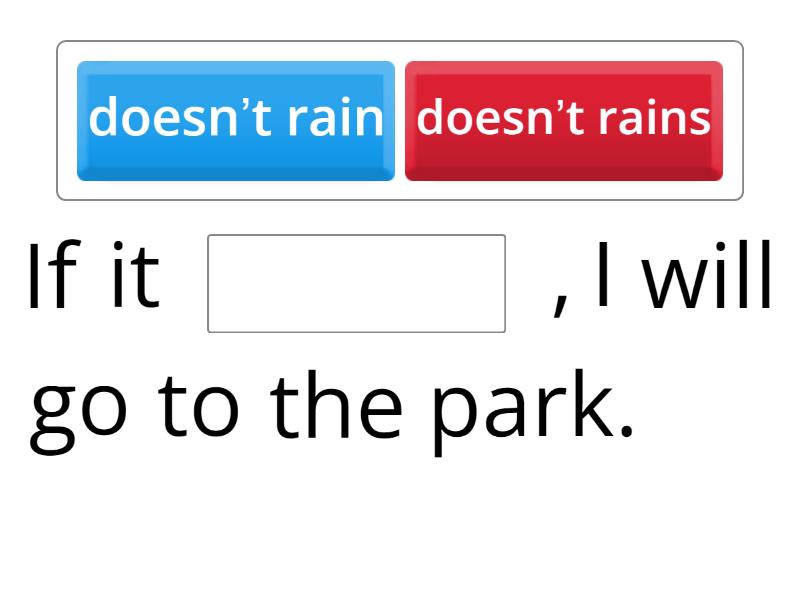If it ____ , I will go to the park. If she ____ soon, she'll miss the bus If you ____ her things, your sister will be mad. If I ____ hard, I will not succeed. If you ____ the bus, will you take the train? If you ____ her to your party, she will not go.