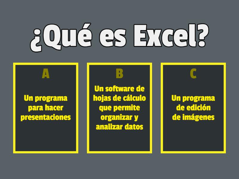 1) ¿Qué es Excel? a) Un programa para hacer presentaciones b) Un software de hojas de cálculo que permite organizar y analizar datos c) Un programa de edición de imágenes 2) ¿Qué es un gráfico circular en Excel? a) Un gráfico que muestra datos en forma de barras. b) Un gráfico que muestra datos en forma de círculos, representando partes de un todo. c) Un gráfico que organiza datos en filas y columnas. 3) ¿Cual es un grafico de Lineas? a) b) c) 4) ¿Para qué sirve un gráfico de barras? a) Para mostrar tendencias a lo largo del tiempo. b) Para comparar diferentes categorías de datos visualmente. c) Para mostrar datos numéricos en formato de tabla. 5) ¿Qué elemento se debe seleccionar primero para crear un gráfico en Excel? a) El tipo de gráfico. b) Los datos que queremos representar. c) El color de las barras. 6) ¿Cual es un grafico circular? a) b) c) 7) ¿Qué función usarías para calcular el promedio de un rango de celdas? a) MEDIANA b) PROMEDIO c) MODA 8) ¿Qué función usarías para encontrar el valor más pequeño en un conjunto de datos? a) MÁXIMO b) PROMEDIO c) MÍNIMO 9) ¿Qué función devuelve el valor más frecuente en un conjunto de datos? a) MEDIANA b) MODA c) MÍNIMO 10) ¿Qué resultado obtienes con la fórmula =MEDIANA(A1) a) El valor más pequeño del rango b) El promedio de todos los valores en el rango c) El valor que se encuentra en el medio cuando los datos están ordenados 11) ¿Qué gráfico usarías para representar la proporción de ventas de diferentes productos? a) Gráfico de barras b) Gráfico circular c) Gráfico de dispersión 12) ¿Cual es el logo de excel? a) b) c) 13) ¿Cuál de los siguientes NO es un tipo de gráfico disponible en Excel? a) b) c) 14) ¿Qué tipo de gráfico en Excel es más adecuado para mostrar la tendencia de los datos a lo largo del tiempo? a) b) c) 15) ¿Cuál de las siguientes fórmulas se usa para encontrar el valor más alto en un conjunto de datos? a) =MÍNIMO(A1) b) =PROMEDIO(A1) c) =MÁXIMO(A1)