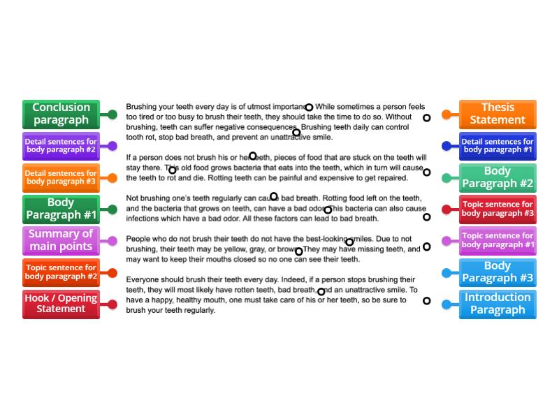 Introduction Paragraph, Hook / Opening Statement, Thesis Statement, Body Paragraph #1, Topic sentence for body paragraph #1, Detail sentences for body paragraph #1, Body Paragraph #2, Topic sentence for body paragraph #2, Detail sentences for body paragraph #2, Body Paragraph #3, Topic sentence for body paragraph #3, Detail sentences for body paragraph #3, Conclusion paragraph, Summary of main points.