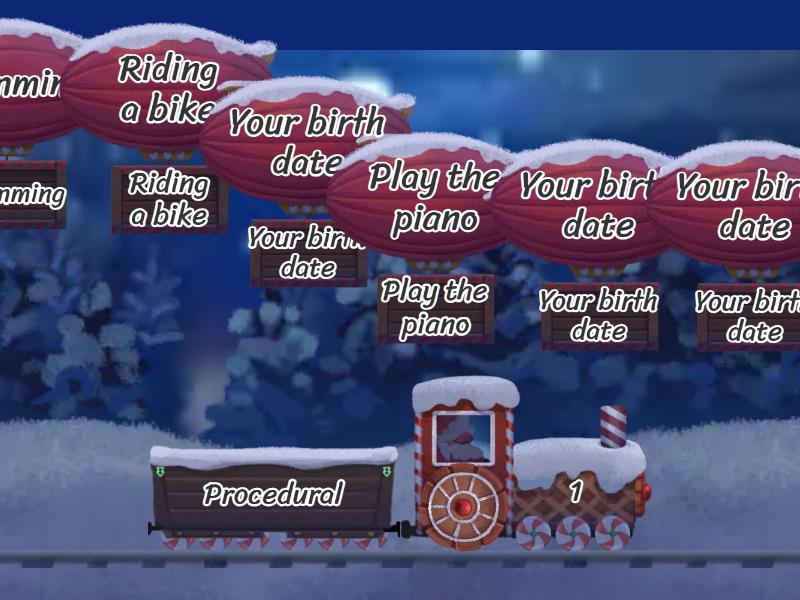 Your birth date - Semnatic, First day at school - Episodic, Brushing teeth - Procedural, 13th birthday - Episodic, Play the piano - Procedural, 2 + 2 = 4 - Semantic, Attending a concert - Episodic, Your first day at a new job - Episodic, Capital of France - Semantic, Riding a bike - Procedural, Swimming - Procedural, Water boils at 100 degrees - Semantic,