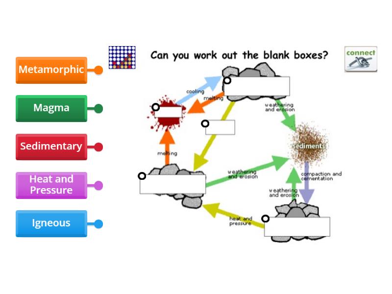 Igneous, Sedimentary, Metamorphic, Magma, Heat and Pressure.