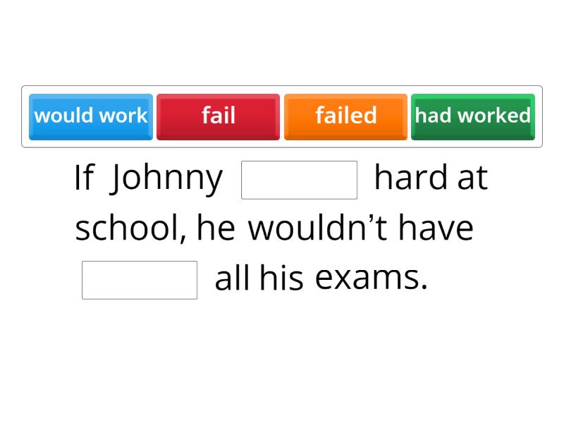If Johnny ____ hard at school, he wouldn’t have ____ all his exams. If he ____ his exams, he ____ a job. If he ____ a job, he would ____ some money. If he ____ money, he ____ back to school. If he hadn’t ____ back to school, he ____ gone to university. If he ____ to university, he wouldn’t have ____ a good job.