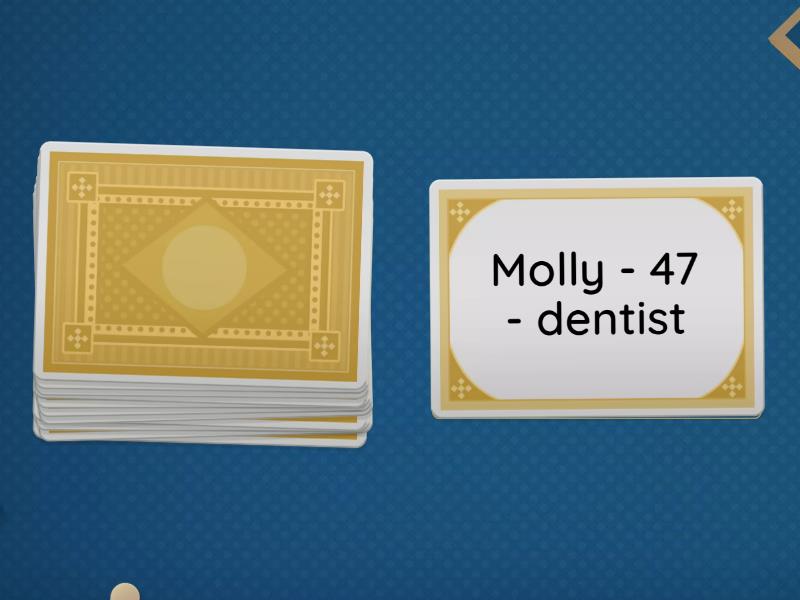 Rajesh - 25 - designer, Holga - 50 - architect, Jack - 32 - doctor, Molly - 47 - dentist, Kim - 20 - student, Ether - 65 - retired, Walter - 39 - artist, Robert - 42 - engineer, Joline - 19 - dancer, Laura - 29 - unemployed, Hamir - 18 - waiter, Rumi - 21 - singer.