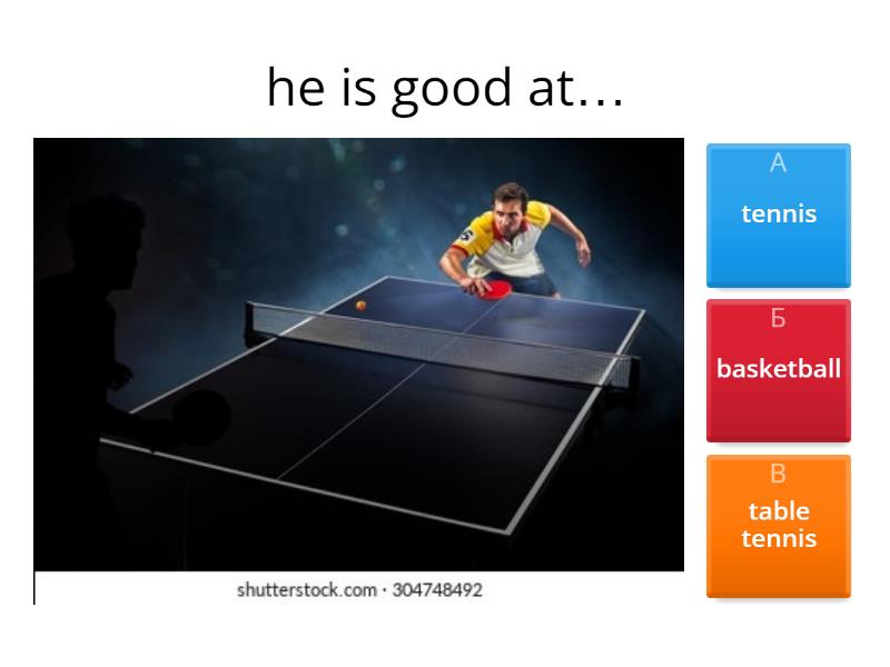 1) he is good at… a) tennis b) basketball c) table tennis 2) she is good at…. a) swimming b) dancing 3) he is good at…. a) basketball b) football 4) she is good at… a) dancing b) swimming 5) he is good at…. a) basketball b) football 6) he is good at ….. a) table tennis b) computer games