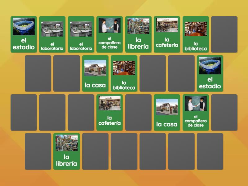 el compañero de clase, la biblioteca, la cafetería, la casa, el estadio, el laboratorio, la librería, la clase, el curso, el compañero de cuarto, la compañera de cuarto, la compañero de clase, la materia, la universidad, la especialización,