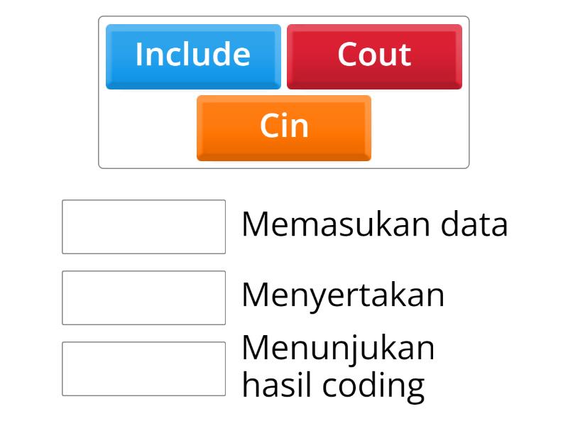 Cout - Menunjukan hasil coding, Cin - Memasukan data, Include - Menyertakan,