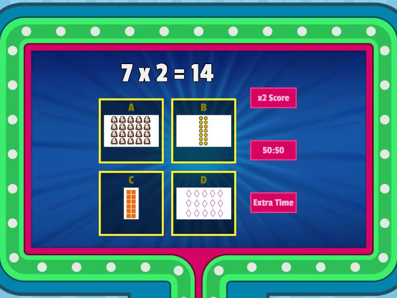 1) 7 x 2 = 14 a) b) c) d) 2) 4 x 5 = 20 a) b) c) d) 3) 2 x 5 = 10 a) b) c) d) 4) 5 x 6 = 30 a) b) c) d) 5) 8 x 4 = 40 a) b) c) d) 6) 3 x 5 = 15 a) b) c) d) 7) 3 x 10 = 30 a) b) c) d) 8) 6 x 2 = 12 a) b) c) d) 9) 2 x 9 = 18 a) b) c) d) 10) 2 x 2 = 4 a) b) c) d) 11) 2 x 3 = 6 a) b) c) d) 12) 1 x 10 = 10 a) b) c) d) 13) 5 x 1 = 5 a) b) c) d)
