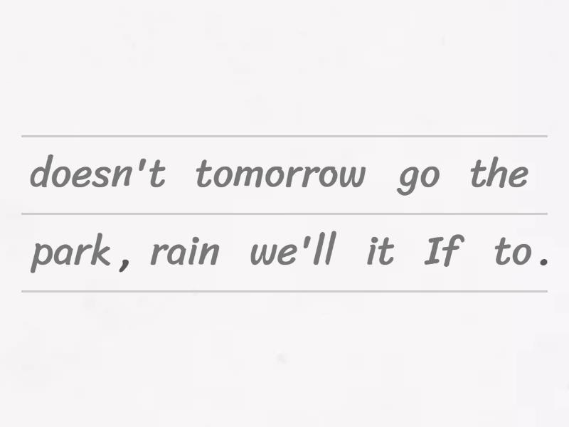 If it doesn't rain tomorrow, we'll go to the park., If she goes to the party, she'll buy a new dress., If I lived by the mountains, I'd go swimming everyday., He would buy a house if he had the money., If he had a camera, he'd take a picture., If the weather is good, we'll go surfing., If you don't like the park, I won't take you again., Would you play rugby if you lived in England?, Will you come for a walk if the weather is good?, Would he go to the future if he had a time machine?, If I stay home this evening, I will go to bed early., If he was a famous actor, he'd meet lots of people., She will call us if there's a problem., If she isn't careful, she will fall., If I knew her name, I would tell you.,