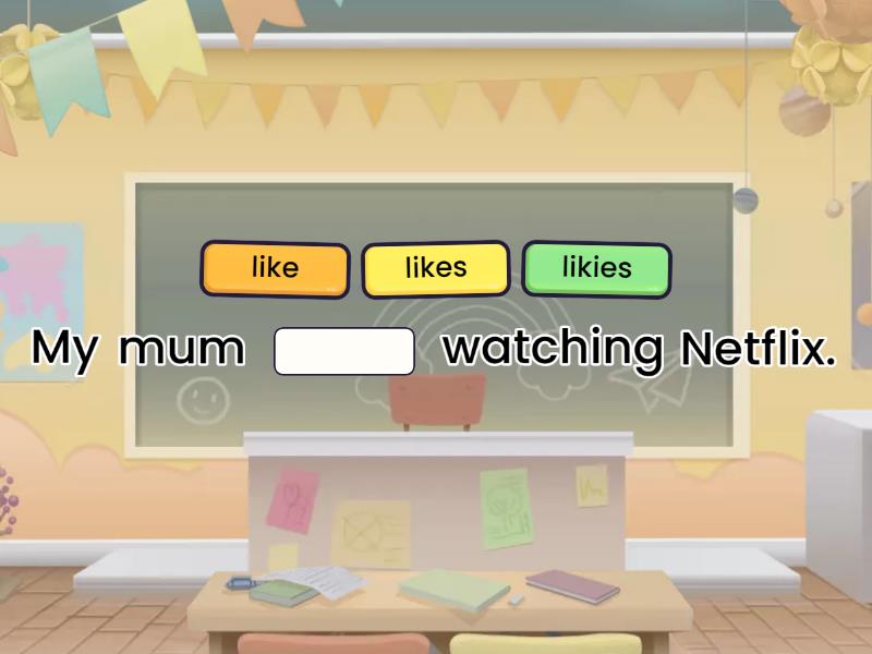 My mum ____ watching Netflix. Joanne ____ in the countryside. We ____ three cats and one dog. I ____ know the word in English. He ____ listen to music in the kitchen. They ____ a very fast car. My friends ____ to my house every Friday afternoon. You ____ Coca Cola every day. It ____ at night. Tony and I ____ on the bed. Your brother ____ really well. My friend and I ____ Italian. People always ____ in the cinema. The pen ____ work. ____ your cousin live here? Mary and John ____ any children. She ____ yoga on Sundays. The shops ____ at 10pm on Fridays. Where ____ the train stop? I ____ in a school but my sister ____ at university.