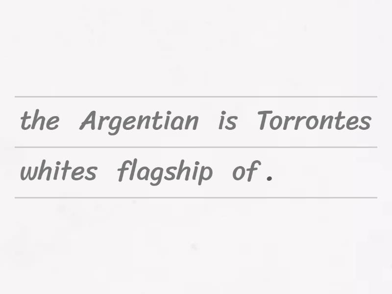 Torrontes is the flagship of Argentian whites., Malbec is a popular French strain in Argentina., The recently new graduated sommelier is working in the cellar., Red wines tend to shed its color when they are old., Champagne is French sparkling wine, Tannat is deep purple with violet highlights, That is a pale golden Chardonnay., This Sauvignon Blanc has a bright, pale yellow color., That is a pale salmon Italian rosé wine. ,