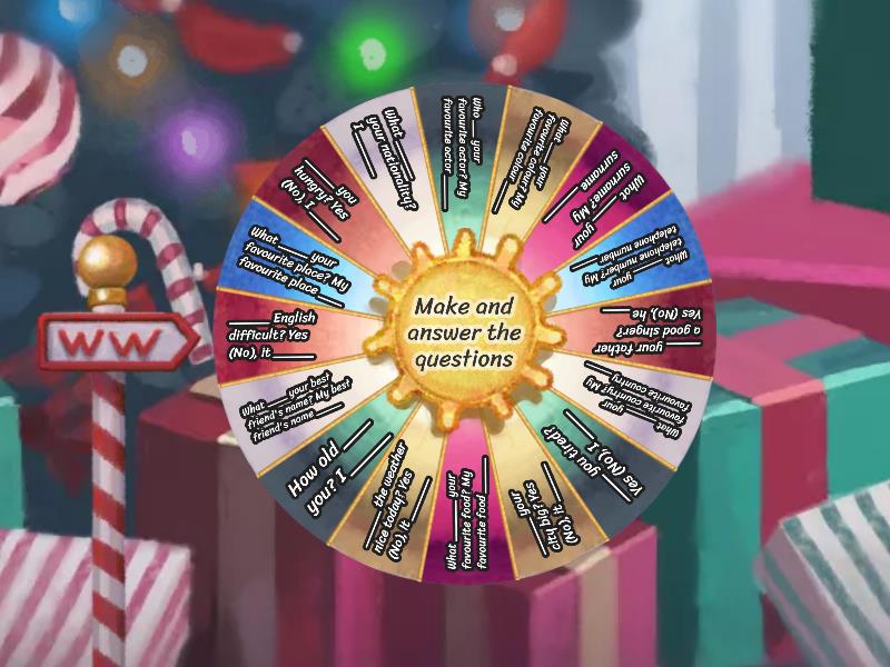 1) Who ___ your favourite actor? My favourite actor ______ 2) How old ____ you? I ______ 3) What ____ your best friend's name? My best friend's name _____ 4) What ____ your favourite colour? My favourite colour ______ 5) What _______ your favourite food? My favourite food ______ 6) ______ you hungry? Yes (No), I ______ 7) ______ your city big? Yes (No), it ______ 8) ______ English difficult? Yes (No), it ______ 9) ______ the weather nice today? Yes (No), it _______ 10) What _____ your surname? My surname _______ 11) What ______ your telephone number? My telephone number _____ 12) What ______ your nationality? I _______ 13) What _____ your favourite place? My favourite place ____ 14) What ______ your favourite country? My favourite country _____ 15) _____ you tired? Yes (No), I _____ 16) _____ your father a good singer? Yes (No), he ____