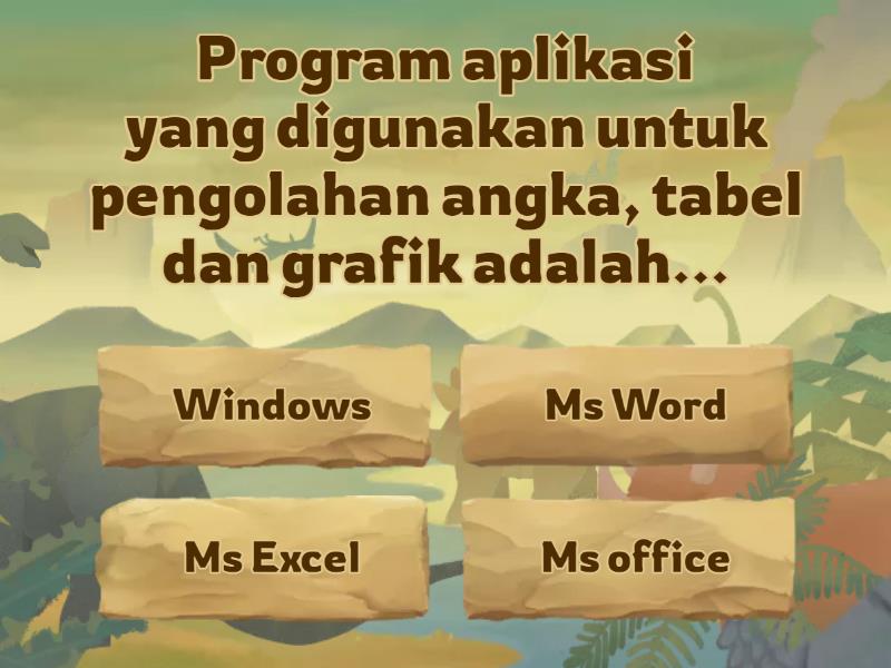 1) Program aplikasi yang digunakan untuk pengolahan angka, tabel dan grafik adalah... a) Windows b) Ms Word c) Ms Excel d) Ms office 2) Dibawah ini yang termasuk lembar kerja Ms Excel adalah, kecuali... a) Menubar b) Toolbar c) Titlebar d) Excelbar 3) Baris judul dalam Ms Excel disebut juga dengan... a) Title bar b) Menubar c) toolbar d) Semua jawaban benar 4) Untuk menghitung rata-rata dalam suatu range kita menggunakan formula... a) =SUM() b) =MAX() c) =AVERAGE() d) =MIN() 5) Microsoft Excel merupakan program aplikasi... a) Spreadsheet b) Presentasi c) Animasi d) Wordprosesor 6) Salah satu cara menyimpan wordbook pada excel adalah dengan menggunakan... a) Ctrl+B b) Ctrl+S c) Ctrl+C d) Ctrl+V 7) Berikut ini yang merupakan alamat sel, yaitu... a) 84 b) 3F c) B5 d) BB 8) Ikon save, redo, dan undo merupakan bagian menu dari... a) Quick Access Toolbar b) Office Button c) Status Bar d) Ribbon 9) Apa yang dimaksud dengan sel (Cell) dalam excel? a) Kumpulan beberapa sel b) Pertemuan antara baris dengan kolom c) Lembar kerja dalam excel d) Kumpulan beebrapa sel 10) Berikut ini yang BUKAN termasuk kelompok program Microsoft Office adalah... a) Microsoft Windows b) Microsoft Word c) Microsoft Excel d) Microsoft Power Point