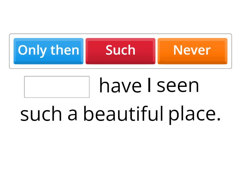 ____ have I seen such a beautiful place. ____ am I tired from the gym, my body hurts... ____ did I notice how much training I needed. ____ I had arrived home, had I realized my mistake. ____ had we started our meal when the phone rang. ____ had I felt so happy. ____ had I arrived than they all started to argue.