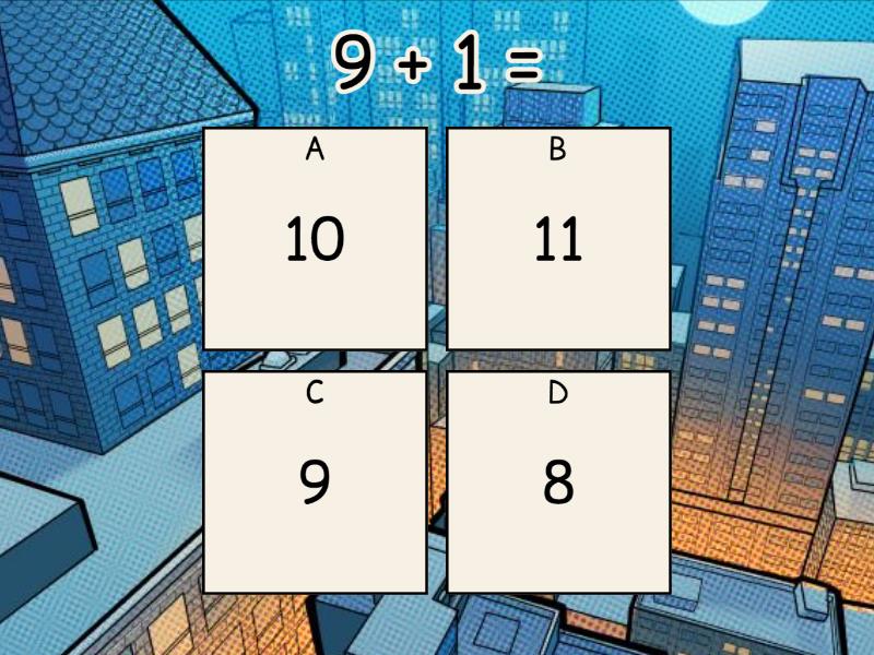 1) 4 + 7 = a) 8 b) 9 c) 11 d) 17 2) 5 + 0 = a) 3 b) 5 c) 7 d) 10 3) 5 + 5 = a) 10 b) 13 c) 14 d) 15 4) 4 + 0 = a) 4 b) 8 c) 9 d) 13 5) 7 + 9 = a) 11 b) 14 c) 15 d) 16 6) 1 + 2 = a) 1 b) 3 c) 5 d) 9 7) 4 + 2 = a) 2 b) 6 c) 7 d) 16 8) 9 + 1 = a) 8 b) 9 c) 10 d) 11 9) 1 + 1 = a) 2 b) 3 c) 4 d) 14 10) 7 + 1 = a) 6 b) 7 c) 8 d) 9