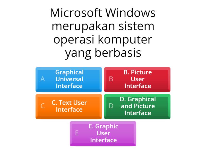1) Microsoft Windows merupakan sistem operasi komputer yang berbasis a) Graphical Universal Interface b) B. Picture User Interface c) C. Text User Interface d) D. Graphical and Picture Interface e) E. Graphic User Interface 2) Seorang system analyst mempunyai tugas utama a) A. Merubah sistem b) B. Mengembangkan aplikasi dan database c) C. Merancang sistem d) D. Menginput data e) E. Membuat program 3) Kemampuan komputer dalam melakukan berbagai pekerjaan secara bersamaan disebut dengan.. a) A. Multitalent b) B. Multimedia c) C. Multitasking d) D. Collaboration e) E. System tax 4) Segala sesuatu yang menyangkut keamanan dikenal dengan istilah a) A. Komputer b) B. Security c) C. Hardware d) D. Brainware e) E. Software 5) Sistem komputer terbagi menjadi 3 elemen, yaitu: a) A. Programming, brainware, dan system operasi b) B. Brainware, hardware, dan programming c) C. Hardware, software, dan brainware d) D. Sistem operasi, hardware, dan brainware e) E. Hardware, brainware, dan system operasi 6) Yang dimaksud dengan proposisi majemuk adalah.. a) A. Proposisi yang terdiri atas satu subjek dan dua predikat atau bisa juga terdiri atas dua proposisi tunggal. b) B. Proposisi yang memiliki banyak bentuk baik tujuan maupun artinya c) C. Kalimat yang memiliki tujuan positif dan terstruktur d) D. Kalimat yang terdiri dari 2 proposisi dan memiliki tujuan positif e) E. Kalimat yang memiliki tujuan positif dan memiliki banyak bentuk 7) Salah satu kelebihan jaringan kabel dibandingkan jaringan nirkabel yaitu? a) A. Lebih aman dari gangguan sinyal dari luar b) B. Lebih fleksibel c) C. Lebih mudah dalam proses instalasi d) D. Lebih mudah dalam pemeliharaan e) Baca artikel detikjogja, "25 Contoh Soal Informatika Kelas 10 Kurikulum Merdeka dan Kunci Jawabannya" selengkapnya https://www.detik.com/jogja/kota-pelajar/d-7373031/25-contoh-soal-informatika-kelas-10-kurikulum-merdeka-dan-kunci-jawabannya. 8) Berikut ini yang merupakan keuntungan yang diperoleh dari pemanfaatan jaringan komputer, kecuali a) A. Mempercepat arus informasi b) B. Mengurangi risiko kerusakan perangkat c) C. Memudahkan komunikasi antar divisi d) D. Penghematan biaya e) Baca artikel detikjogja, "25 Contoh Soal Informatika Kelas 10 Kurikulum Merdeka dan Kunci Jawabannya" selengkapnya https://www.detik.com/jogja/kota-pelajar/d-7373031/25-contoh-soal-informatika-kelas-10-kurikulum-merdeka-dan-kunci-jawabannya. 9) Jenis topologi jaringan yang semua perangkat terhubung ke satu kabel utama disebut: a) A. Topologi bintang b) B. Topologi cincin c) C. Topologi bus d) D. Topologi mesh e) E. Topologi pohon f) Baca artikel detikjogja, "25 Contoh Soal Informatika Kelas 10 Kurikulum Merdeka dan Kunci Jawabannya" selengkapnya https://www.detik.com/jogja/kota-pelajar/d-7373031/25-contoh-soal-informatika-kelas-10-kurikulum-merdeka-dan-kunci-jawabannya. 10) Yang bukan merupakan perangkat masukan (input device) dari kumpulan nama perangkat keras berikut ini adalah.. a) A. Keyboard b) B. Mic c) C. Scanner d) D. Mouse e) E. Monitor