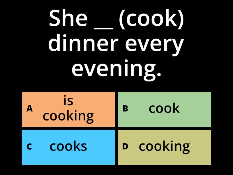1) She __ (cook) dinner every evening. a) is cooking b) cook c) cooks d) cooking 2) They __ (not play) soccer right now. a) don't play b) aren't playing c) not playing d) doesn't play 3) __ he __ (watch) TV every morning? a) Is he watching b) Does he watch c) He does watch d) Is he watch 4) We __ (study) for the test at the moment. a) study b) are studying c) studies d) studying 5) My mom __ (not work) on weekends. a) isn't working b) doesn't work c) don't work d) not working 6) __ they __ (play) outside right now? a) Are they playing b) Do they play c) They are play d) Are they play 7) He __ (go) to the gym every day. a) is going b) goes c) go d) going 8) She __ (not read) a book right now. a) isn't reading b) doesn't read c) not reading d) don't read 9) __ you __ (like) pizza? a) Are you like b) Do you like c) You do like d) Are you liking 10) We __ (have) a meeting right now. a) are having b) have c) has d) having