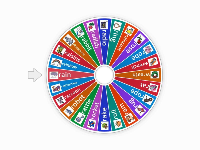 1) rainbow 2) raisins 3) rhinoceros 4) rabbit 5) radish 6) radio 7) ring 8) raincoat 9) rose 10) robe 11) wrench 12) wreath 13) rat 14) rope 15) rug 16) ram 17) roll 18) rake 19) rocket 20) rattle 21) robot 22) raccoon 23) rattlesnake 24) rain