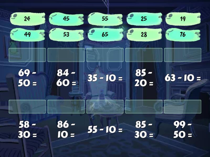65 - 85 - 20 =, 49 - 99 - 50 =, 53 - 63 - 10 =, 55 - 85 - 30 =, 25 - 35 - 10 =, 24 - 84 - 60 =, 28 - 58 - 30 =, 19 - 69 - 50 =, 76 - 86 - 10 =, 45 - 55 - 10 =,