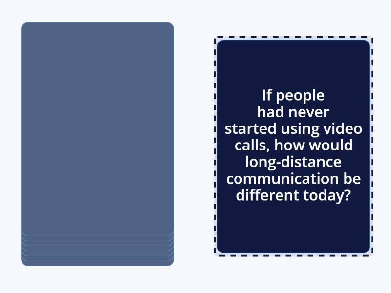 If people hadn’t invented email, how would businesses communicate today?, If texting had been available fifty years ago, how would it have changed relationships?, If social media had existed in your grandparents' time, what impact do you think it would have had on society?, If people had never started using video calls, how would long-distance communication be different today?, If smartphones had never been invented, how would people keep in touch while traveling?, If letters were still the main way to communicate, what would be the pros and cons?, If face-to-face meetings were always necessary for work, how would companies manage communication today?, If people hadn’t started using instant messaging apps, what methods would they use to stay in touch quickly?.