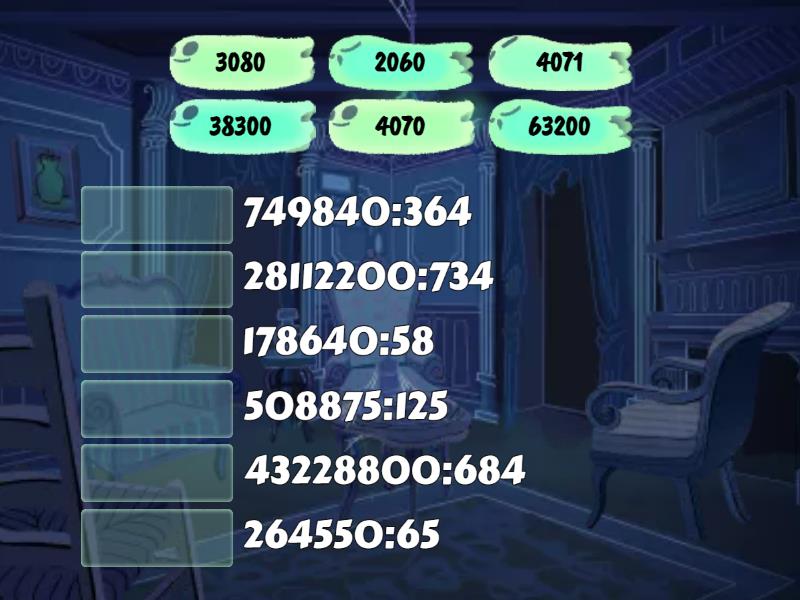 3080 - 178640:58, 4070 - 264550:65, 4071 - 508875:125, 2060 - 749840:364, 38300 - 28112200:734, 63200 - 43228800:684,