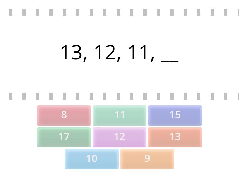 10 - 13, 12, 11, __, 8 - 11, 10, 9, __, 9 - 12, 11, 10, __, 17 - 20,19,18,__, 12 - 15, 14, 13, __, 15 - 18,17,16,__, 11 - 14, 13, 12, __, 13 - 16,15,14__,