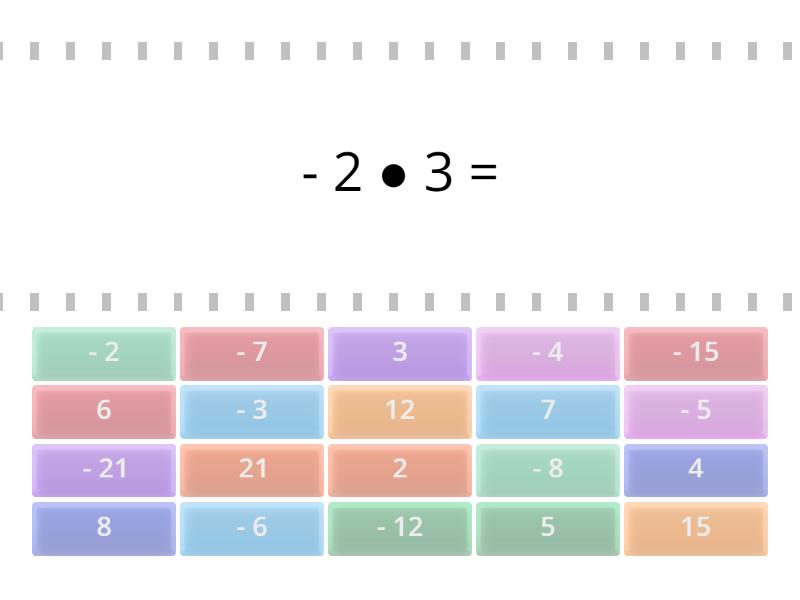 - 6 - - 2 ● 3 =, 6 - - 2 ● - 3 =, 12 - 4 ● 3 =, - 12 - 4 ● - 3 = , - 4 - 12 ÷ - 3 = , 4 - - 12 ÷ - 3 = , - 2 - 6 ÷ - 3 =, 2 - - 6 ÷ - 3 = , 3 - - 6 ÷ - 2 =, - 3 - - 6 ÷ 2 =, - 15 - 5 ● - 3 =, 15 - - 5 ● - 3 =, 5 - - 15 ÷ - 3 =, - 5 - - 15 ÷ 3 =, 8 - 4 ● 2 =, - 8 - - 4 ● 2 =, 21 - - 7 ● - 3 =, - 21 - 7 ● - 3 =, 7 - - 21 ÷ - 3 =, - 7 - 21 ÷ - 3 =,
