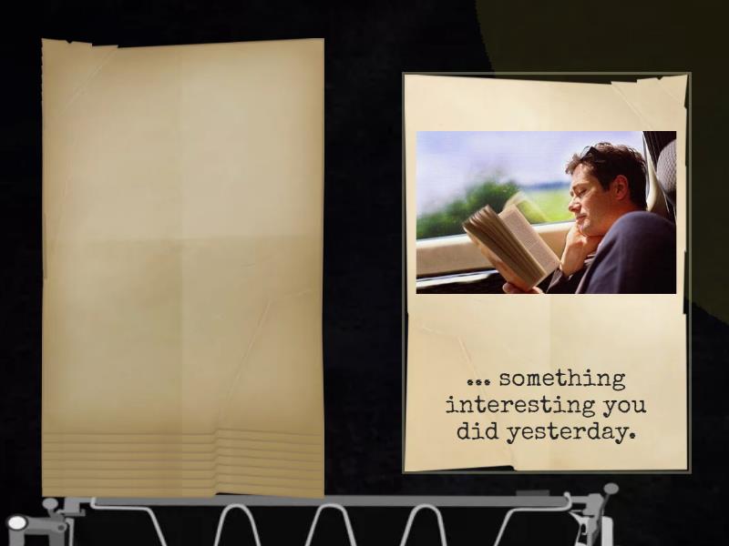 ... somewhere you went last weekend. , ... something important you forgot to do last week. , ... the last thing you sent by post. , ... an interesting photo you took last summer. , ... something you bought last week. , ... something interesting you did yesterday. , ... something you had and liked when you were younger but you haven't got now. , ... a present you gave to a friend/significant other/relative for his/her birthday. , ... a present someone gave you for your birthday. .