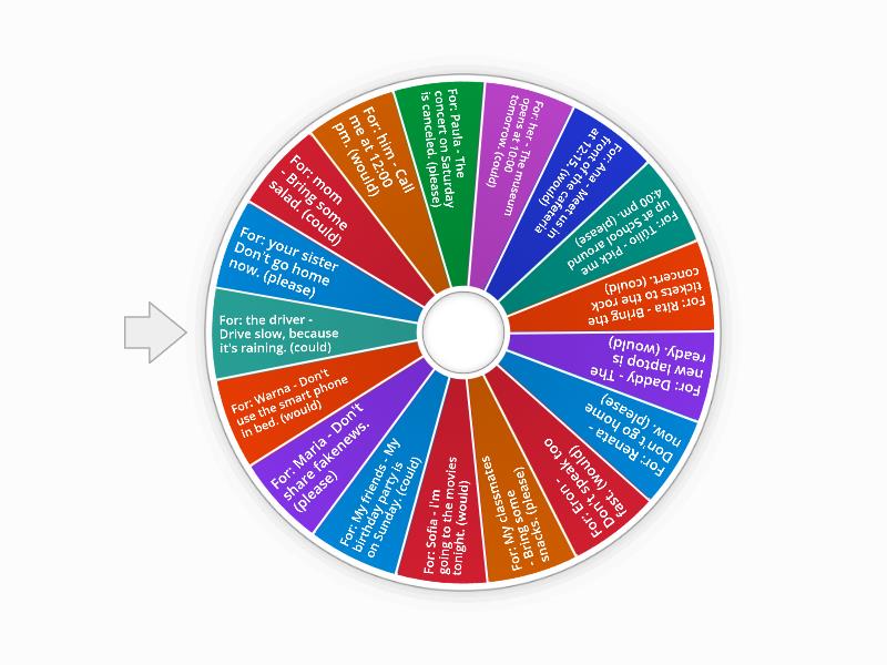 1) For: your sister Don’t go home now. (please) 2) For: mom - Bring some salad. (could) 3) For: him - Call me at 12:00 pm. (would) 4) For: Paula - The concert on Saturday is canceled. (please) 5) For: her - The museum opens at 10:00 tomorrow. (could) 6) For: Ana - Meet us in front of the cafeteria at 12:15. (would) 7) For: Túlio - Pick me up at School around 4:00 pm. (please) 8) For: Rita - Bring the tickets to the rock concert. (could) 9) For: Daddy - The new laptop is ready. (would) 10) For: Renata - Don’t go home now. (please) 11) For: Eron - Don't speak too fast. (would) 12) For: My classmates - Bring some snacks. (please) 13) For: Sofia - I'm going to the movies tonight. (would) 14) For: My friends - My birthday party is on Sunday. (could) 15) For: Maria - Don't share fakenews. (please) 16) For: Warna - Don't use the smart phone in bed. (would) 17) For: the driver - Drive slow, because it's raining. (could)