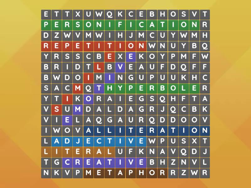 hyperbole, emotive, repetition, adjective, metaphor, alliteration, literal, personification, creative, simile,