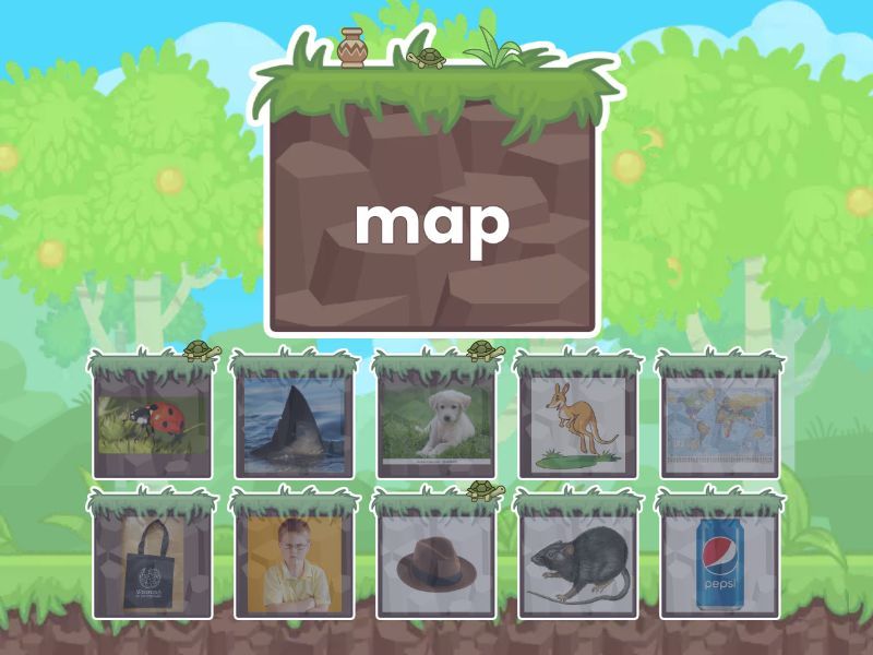 map, mad, hat, bag, hop, rat, fin, pop, bug, pup,